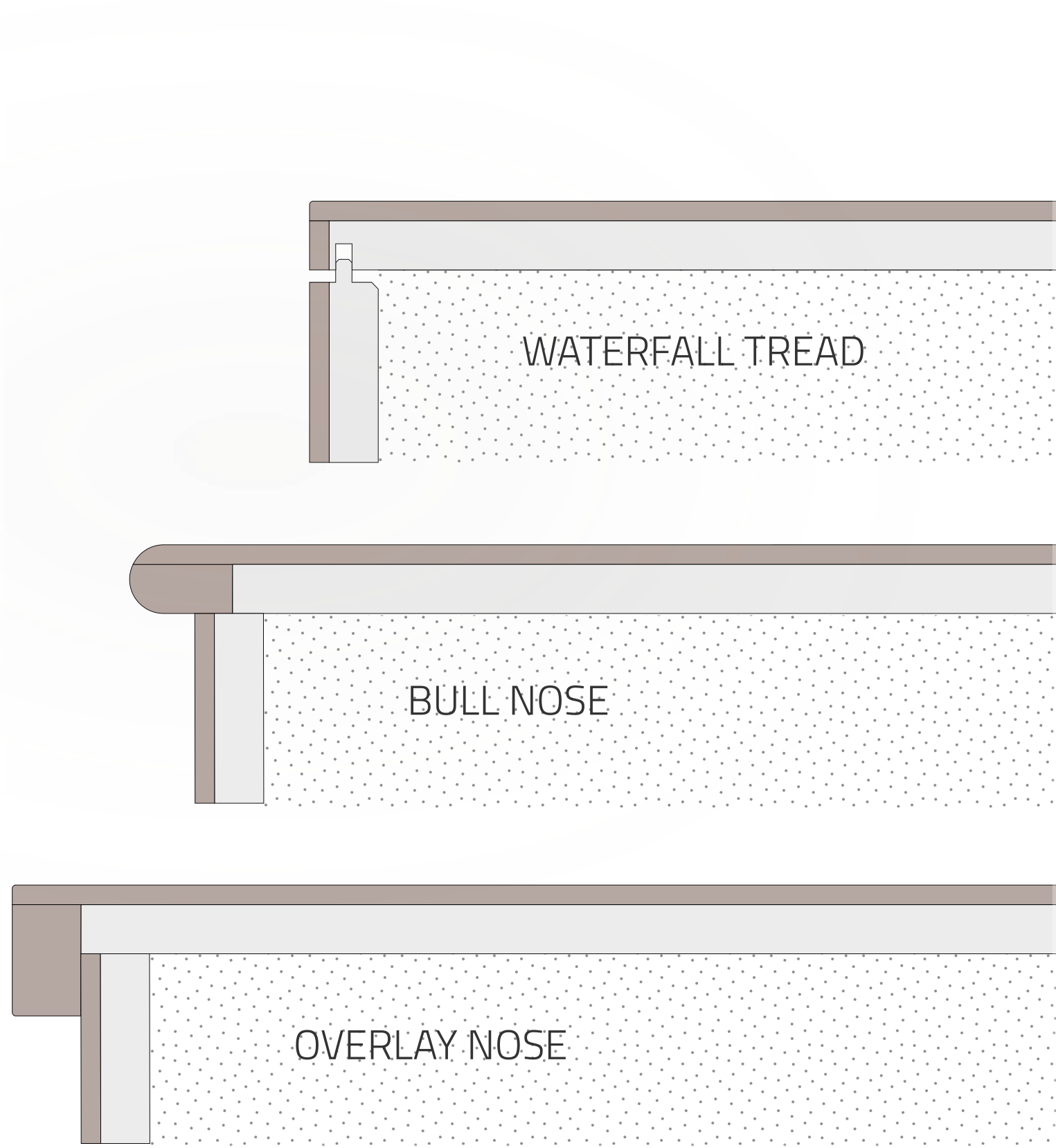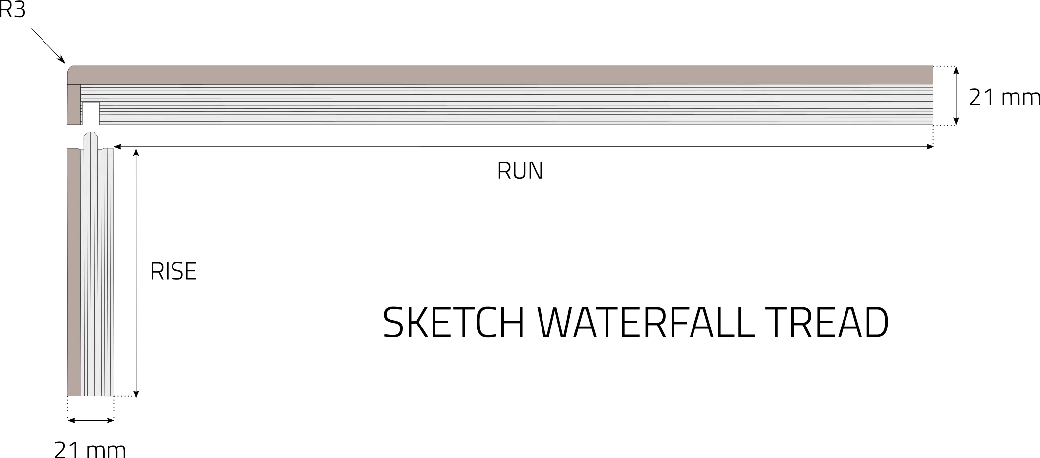 Our waterfall tread is the most popular one, as it offers a clean, smooth design. Also available as Z-shaped treads.