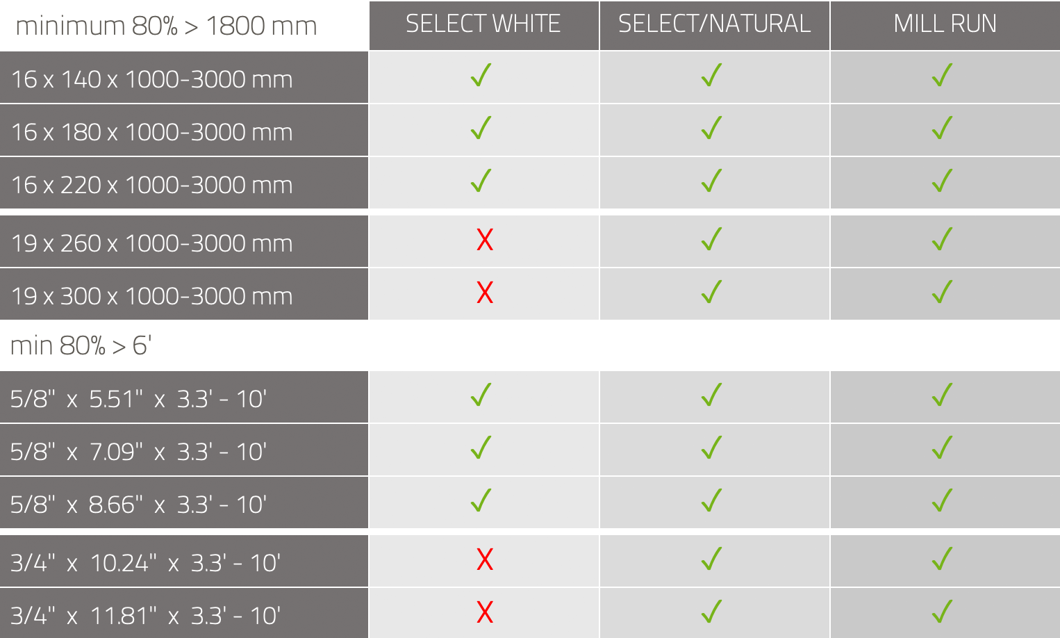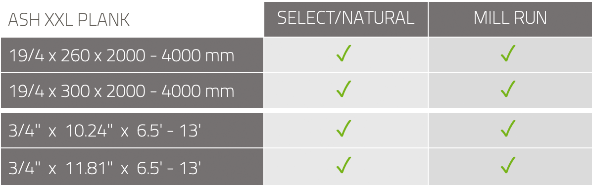 Thickness 19 mm: 15 mm waterproof Birch plywood + 4 mm ash wear layer (3/4")