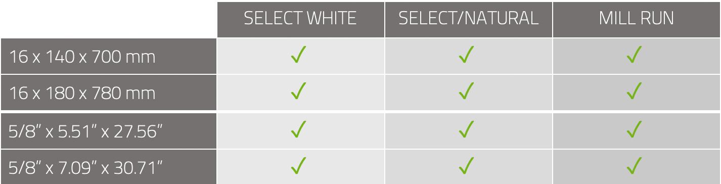 Thickness 16 mm: 12 mm waterproof Birch plywood + 4 mm ash wear layer (5/8")